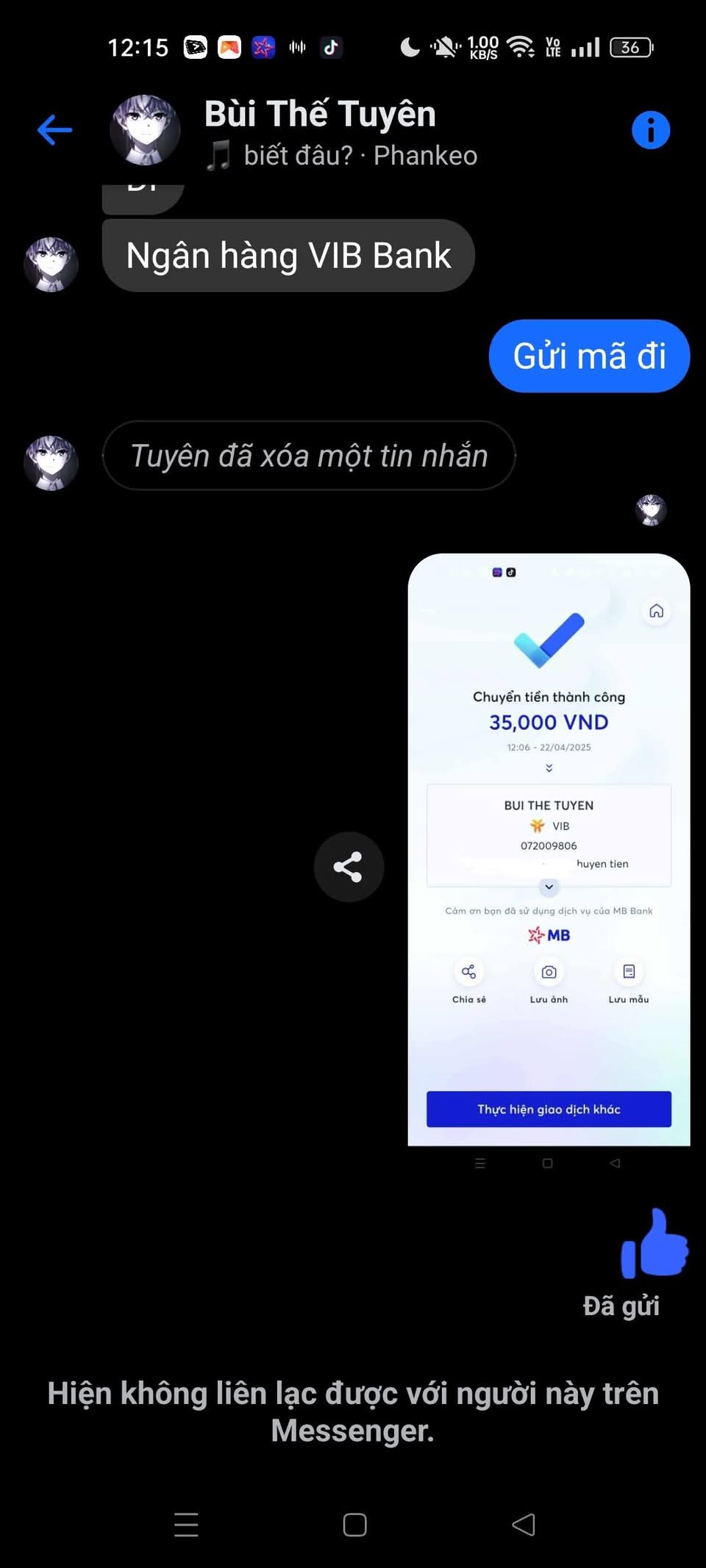 Mình có giao dịch mua kit rương trong Blox Fruits, lần đầu 35k, chuyển khoản xong nó xóa tin nhắn, chặn luôn.